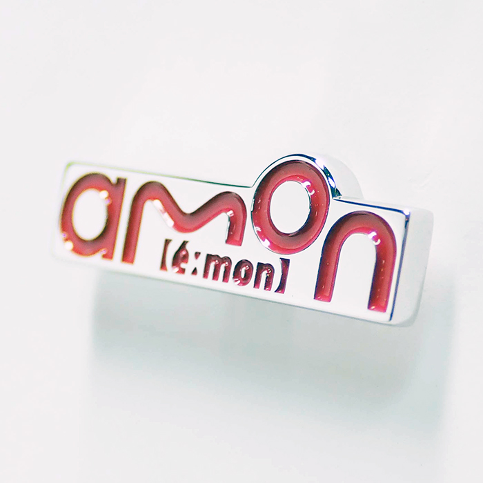 ロゴ部分を凹みにしに、コーポレートカラーで塗装した社員章です。凹みに塗料を流し込んでいるので立体感のある仕上がりになります。